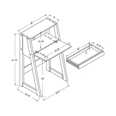 Turn the tables on conventional design with an enticing piece styled for maximum effect. The Homes: Inside + Out Tella Contemporary Storage Desk in Dark Gray by HOMES: Inside + Out is a multi-functional piece that can double as a trendy bar or convenient workspace. The flip-down cabinet is paired with a slim drawer so clutter can be hidden away but easily accessed. The two-tone frame is a true show stopper with its distressed gray panels and angular black legs.