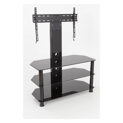 The SDC L family is a simple, attractive, and versatile series of A/V stands that include a TV mount. The high quality, easy to assemble stands blend with virtually any decor. The AVF SDCL900BB-A supports flat panel TVs up to 60″. The black tempered glass shelves and black metal legs modernize any space while the angled corners provide multiple room placement options including into corners to maximize space and viewing angles. Middle and bottom shelves are perfect for AV components such as Digital Receivers, DVRs, Blu-ray, Gaming Consoles, Speakers, Apple TV, Sonos devices, etc. For TV Sizes: 32, 37, 39, 40, 42, 46, 47, 50, 52, 55, 58, 60.