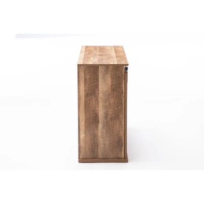 Bring farmhouse-inspired charm to your living room or family room with the Weston Sliding Barn Door Media Cabinet. Use it to organize all your media essentials in one place. This TV stand features a stylish set of barn doors inspired by the countryside. This rustic TV stand, compatible with TVs up to 40″. The Weston comes with a built-in wire management cutout, so you can feed cords from your television, game console, or other electronics through it. This media cabinet is made from a combination of chipboard, medium density fiberboard, and iron. It arrives ready to assemble. The Weston rustic aesthetics gives you the best of both worlds. Whether you’re outfitting a slope-side ski cabin or adding a touch of charm to your city apartment, find the perfect piece for any living space. Complete your space with the matching Weston wine cabinet.