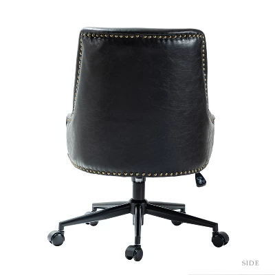 Add a touch of contemporary elegance to your space with a design that is equally functional and stylish. This modern swivel office chair is a wonderful addition to any office or home office with its variety vibrant colors-faux leather fabric upholstery that blends with any design taste. Designed in a chic style with mid-backrest,integrated arms,and gleaming nailhead trim lend a tailored touch, while foam fill offers comfort and support. Sturdy and durable black finish metal base and 360-degree wheels allow you to glide to anywhere in the room, height-adjustable and tilt control to tailor your professional space. The cute computer chair is ideal for any casual or professional working area. It provides comfortable support with a cozy and convenient design. Item Size: 22″Wx26″Dx33.5-36.5″HSeat Size: 22″Wx19″Dx20-23″H